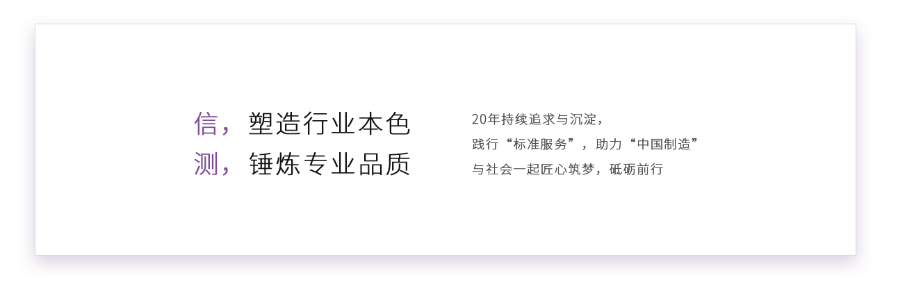 信測標(biāo)準(zhǔn)擁有多項(xiàng)專利技術(shù)和軟件著作權(quán),先后獲得“國家級高新技術(shù)企業(yè)”、“廣東省中小企業(yè)公共技術(shù)服務(wù)示范平臺”、“江蘇省生產(chǎn)性服務(wù)業(yè)領(lǐng)軍企業(yè)”、“廣東省名牌企業(yè)”、“深圳市生產(chǎn)性服務(wù)業(yè)公共服務(wù)平臺”等稱號。公司秉承“立信、善測”的經(jīng)營理念,致力于通過卓越的服務(wù),幫助客戶提高研發(fā)和創(chuàng)新水平,提升產(chǎn)品質(zhì)量,創(chuàng)造美好生活。
